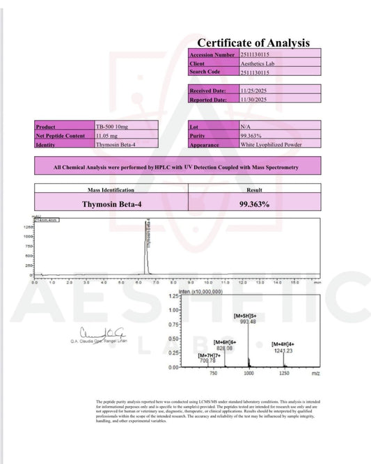 Peptido TB-500 Aesthetic Labs 99.9% Pureza